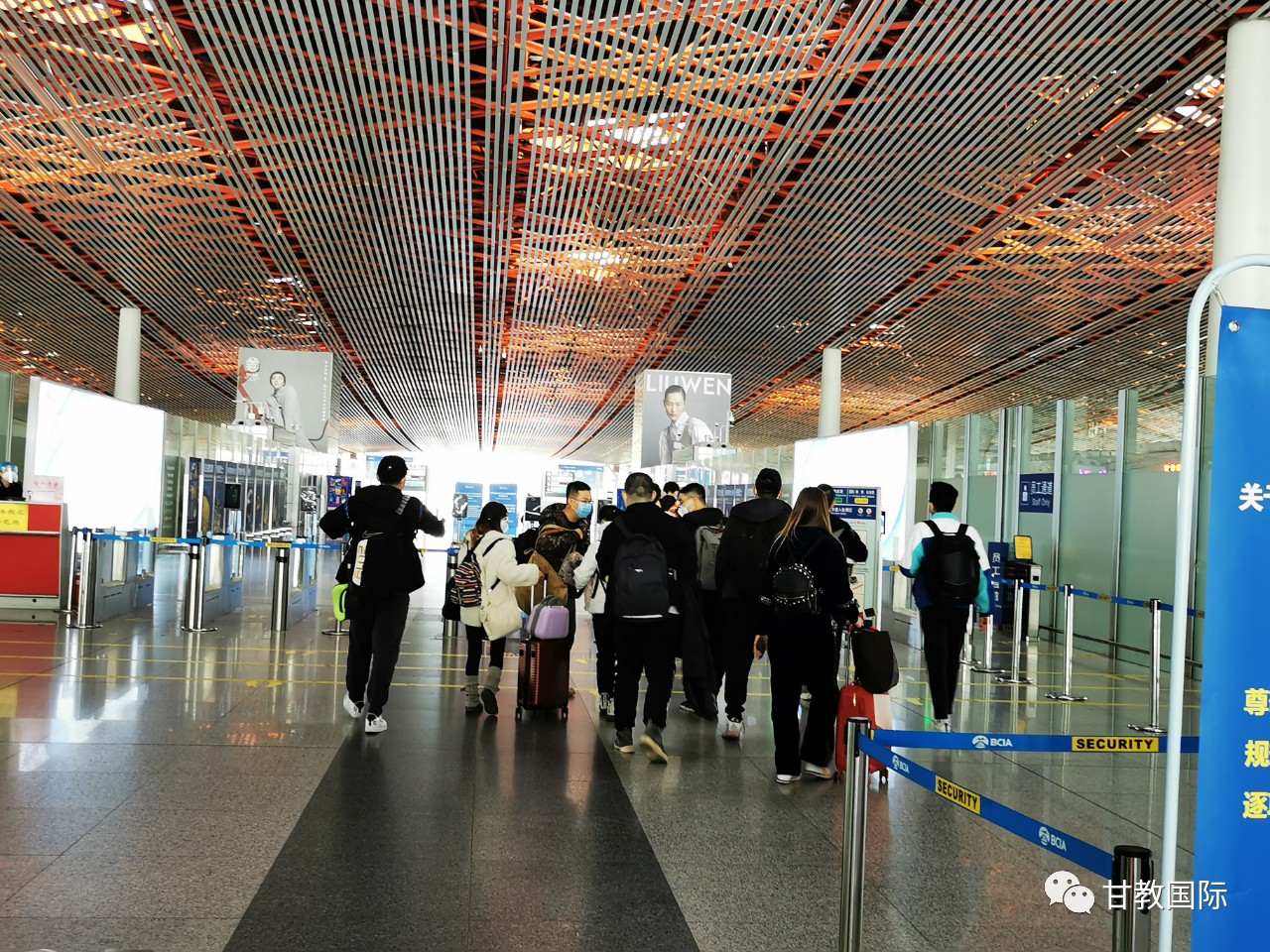 在机场,甘教国际老师为大家统一办理行李托运,换登机牌等手续,并详细讲解乘机过程中需要注意的相关事宜,不时叮嘱大家,实时做好疫情防护,相互照应,有困难随时与老师联系。